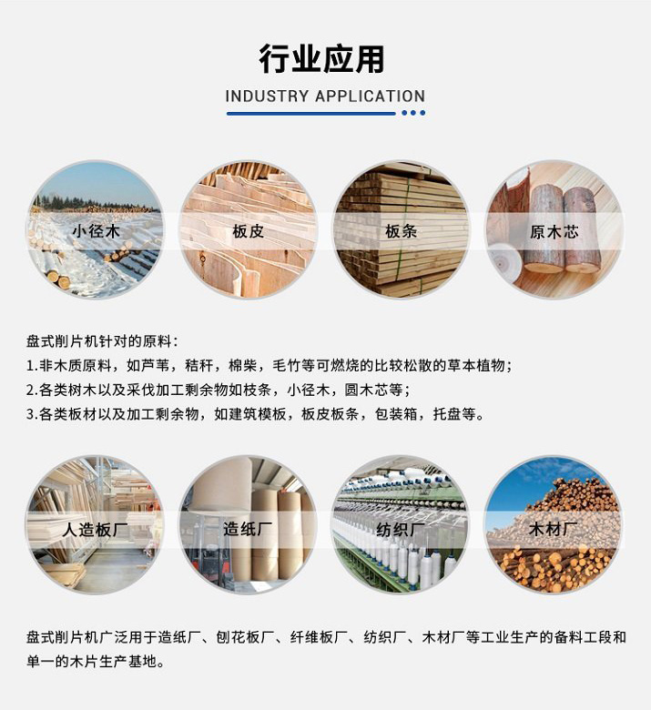 6、鼓式削片機對原料的適應範圍廣,不僅可以切削(xuē)原木,小(xiǎo)徑等(děng)規格材(cái),而(ér)且可(kě)以切削多(duō)種采伐和加工剩(shèng)餘物,以(yǐ)及竹(zhú)木等非木質禾本植物,並且(qiě)結構緊湊,能耗低,,操作(zuò)簡便。