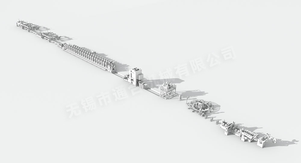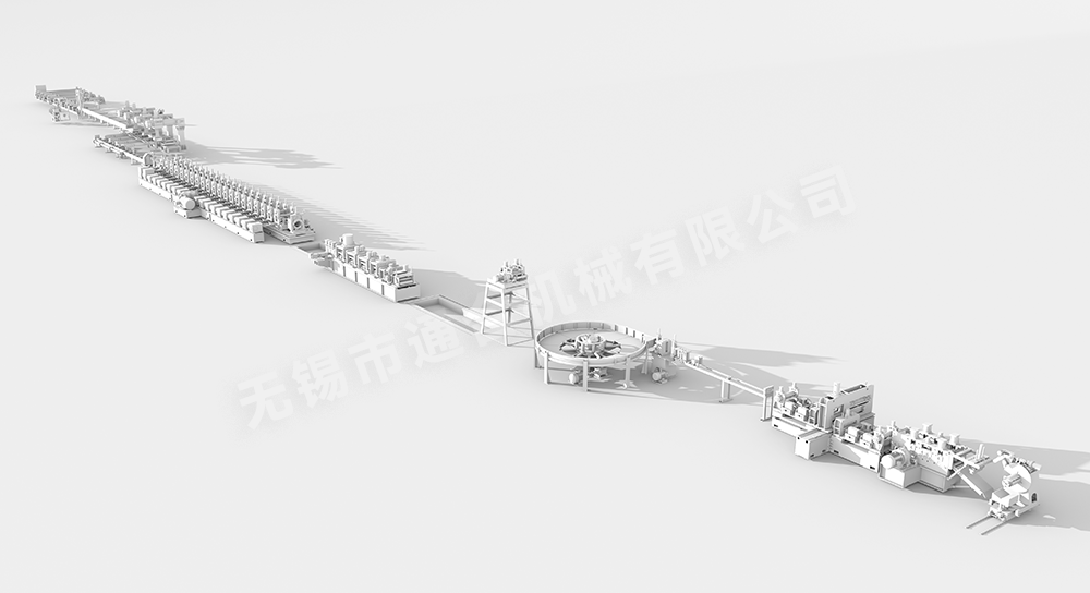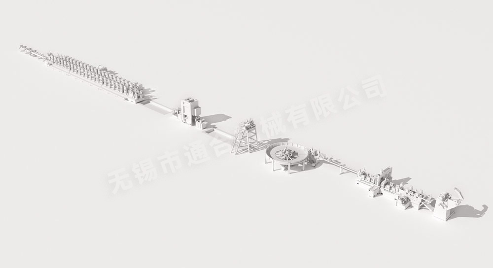 高頻焊管生產線是對各種金(jīn)屬管材原材料(普碳鋼、鋁材、不鏽鋼、有色金屬(shǔ)等)通過(guò)擠壓變形等手段進行成型(圓管、方管、異形管等)、采用高頻感應焊接技術進行焊接、通過擠(jǐ)壓輥對焊接成型的管材進行定(dìng)徑(製作各種管徑)並通過電腦飛鋸對管材進行定尺(按照(zhào)需要的長度)切斷從而得到金屬管材產品的一整套金屬管材生產設備。